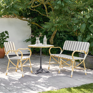 The Bistro chair is designed with beautiful, curved armrests that provide good comfort and extra support. The chair is a refined dining chair which is designed for brasseries, cafes and restaurants, but it is also suitable for the ordinary home. The Bistro Exterior chair is handcrafted in aluminum and ArtFibre making it resistant to all weather types.