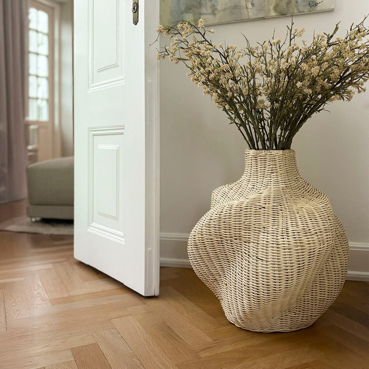 Solaris is a decorative basket with soft, organic shapes, perfect for dried or artificial flowers. The basket is handwoven from natural rattan, so small variations in colour and shape may occur.