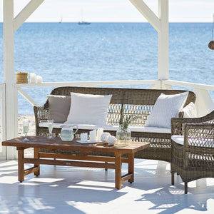 Our Julian lounge table is made of teak wood for outdoor use. Due to its natural oil content, the wood is very durable, resistant to wind and weather, and is not attacked by insects and rot. Over time teak furniture exposed to sun and rain will turn into a beautiful silver-grey color.