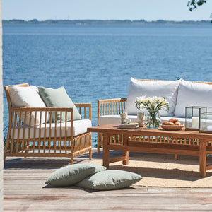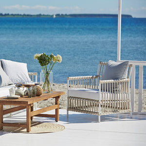 The Caroline Exterior lounge chair comes with a seat cushion, back cushions are add-ons. These are offered in a selection of colors. We also offer to sew cushions in your own fabric - please contact us for information on fabric use and prices. The cushions are fitted with Quickdry Foam, which is a fast-drying foam specially developed to drain water and maximize air circulation for a faster drying process.