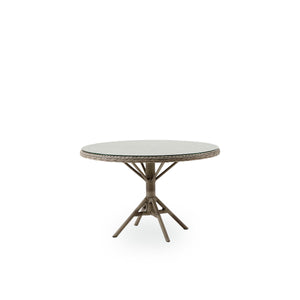 The round Grace garden table with glass top is designed by Sika-Design and is part of our romantic Georgia Garden collection. The Georgia Garden collection is inspired by the British colonial style and by classical Danish wicker furniture.