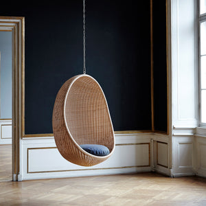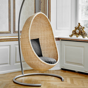 Hanging Egg is especially suitable for rooms with high ceilings, where there is air and space for the elegant hammock chair to come into its own. The hammock chair can be hung up in two ways - either with a chain directly in the ceiling or in a stand. Both are purchased as additions. The ceiling chain is 150 cm and can be shortened as needed. There is no hook for the ceiling, as it depends on the type of ceiling.