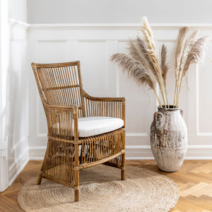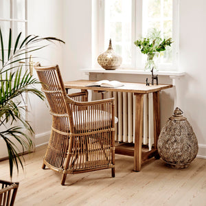 The chair is handmade from sustainable Indonesian rattan by skilled wicker makers. Sika-Design uses carefully selected rattan for furniture production to ensure the highest quality. Rattan is often compared to bamboo, but unlike bamboo which is hollow, rattan is a solid material. Rattan is a remarkably strong and indestructible material, and it also helps to make the furniture sustainable. Here you get a unique piece of furniture that can last for generations.