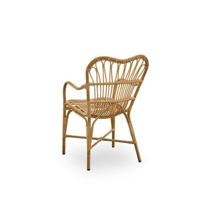 Margret Exterior is handcrafted in Alu-Rattan and ArtFibre, and therefore has a unique strength and durability. Alu-Rattan is weather-resistant powder-coated aluminum and ArtFibre is artificial fibers made from polyethylene. Due to the weather-resistant materials the chair can stand outside all year round, without compromising the design or quality.