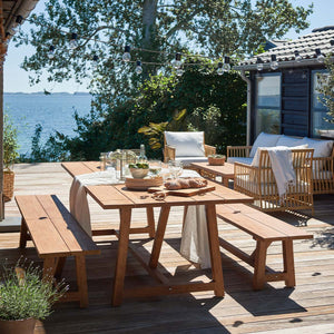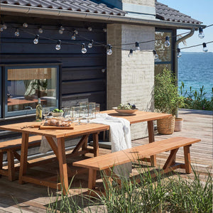 Over time teak furniture exposed to sun and rain will turn into a beautiful silver-grey color. Our outdoor teak furniture can withstand all kinds of weather and be left outside all year round.