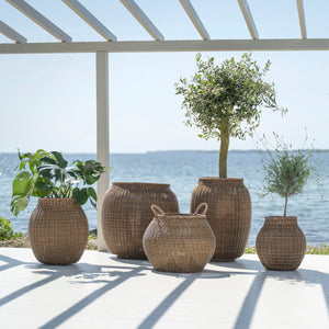 The Ellis Exterior basket is handcrafted in 70% recycled ArtFibre® and 30% new ArtFibre®. ArtFibre® is our own specially-developed fiber made of hard-wearing polyethylene. This material is also used for our Exterior furniture and can withstand rain, cold, heat, UV-rays and even snow.