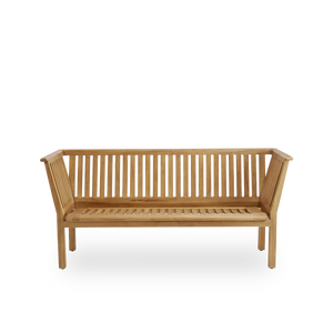 The St Catherine bench is made of teak wood which known for its high strength and beautiful glow. Due to its natural oil content, the wood is very durable and resistant to wind and weather, and is not attacked by insects and rot. Over time teak furniture exposed to sun and rain will obtain a beautiful silver-grey color.